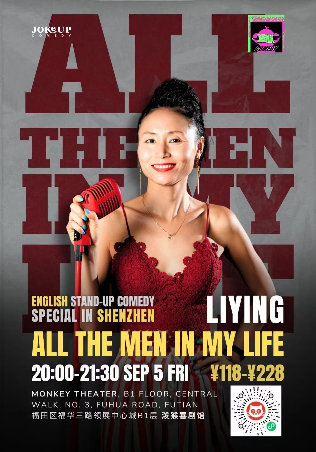 JokeUp Comedy Club proudly presented LiYing Comedy Special — All The Men In My Life in Shenzhen and Guangzhou on September 5 and 6. The show was a huge hit, with audiences completely loving LiYing’s hilarious, fearless, and deeply personal take on love, life, and the men who shaped the story. The atmosphere was amazing, the laughter was nonstop, and the vibes were on another level. Two nights, two cities, and so many unforgettable moments.