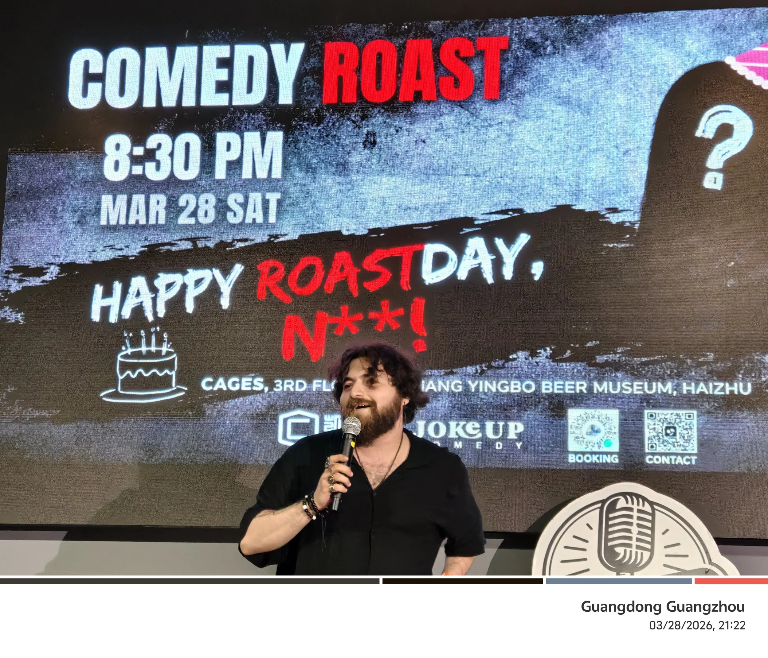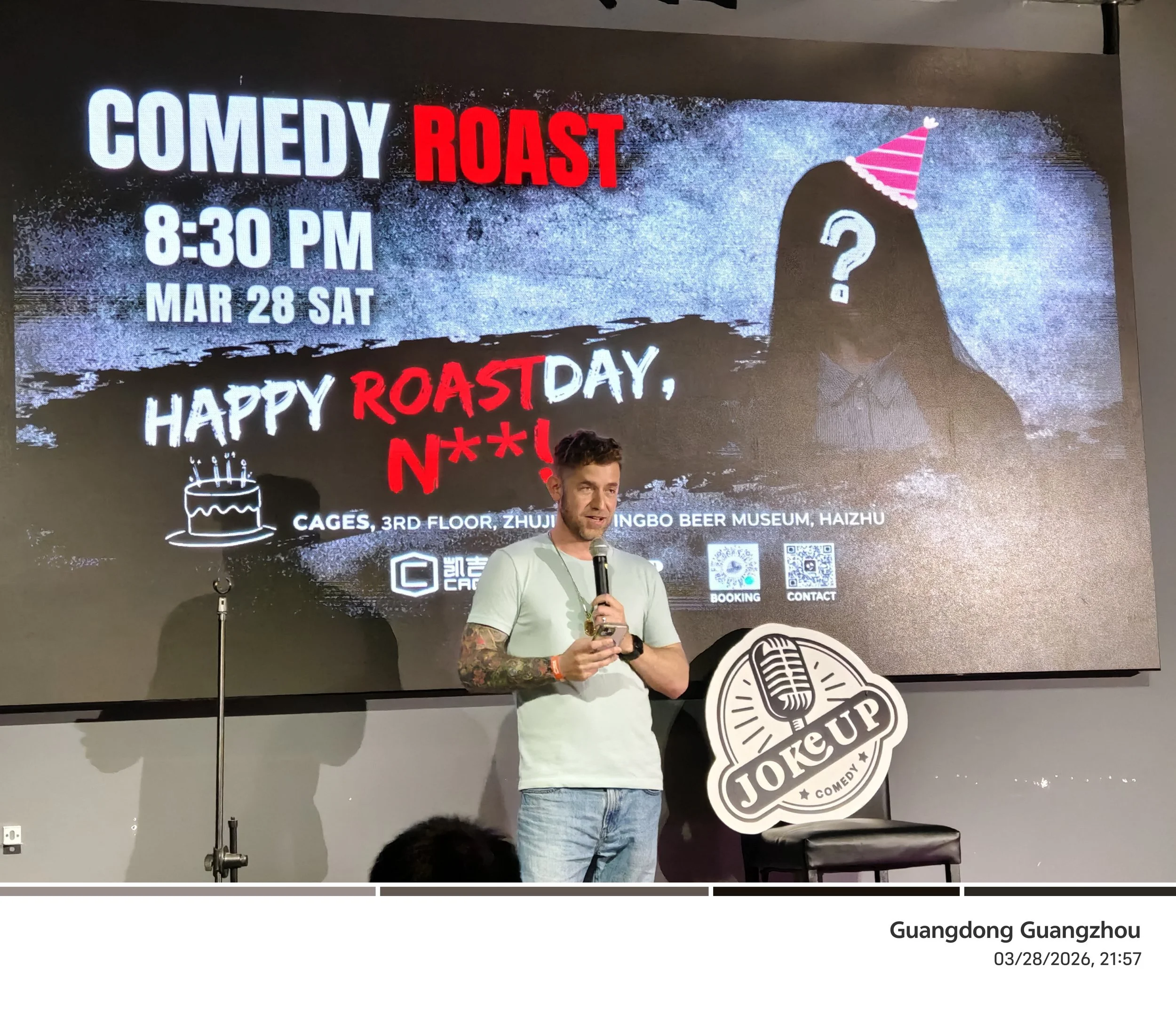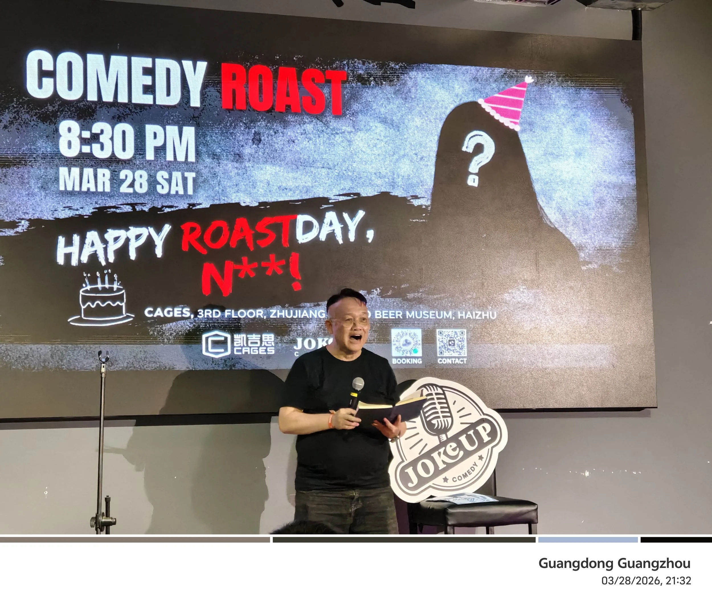 Roastday at Cage’s, Guangzhou is one of JokeUp’s wildest and warmest comedy nights — a birthday show where the love comes wrapped in insults. The idea is simple: whenever a comedian, guest, or staff member has a birthday, the JokeUp crew takes the stage to roast them in front of a live audience. It’s chaotic, personal, hilarious, and somehow still heartfelt.