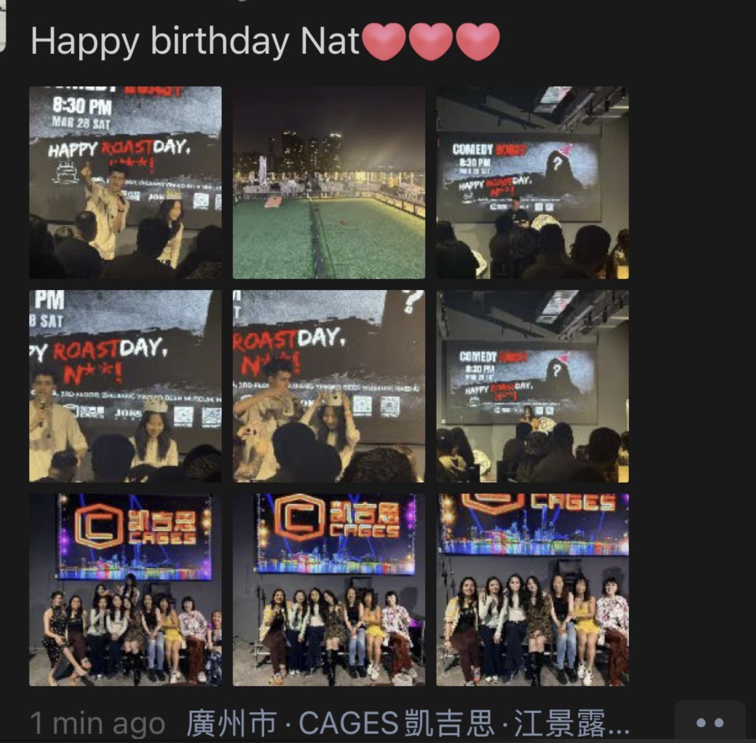What made the night so special was that it wasn’t just funny — it felt like a room full of people celebrating someone who helped build the whole thing. Every roast landed harder because it came from people who know Natalie best. The result was an amazing night at Cage’s in Guangzhou: loud laughter, brutal punchlines, a packed room full of energy, and a birthday celebration that only JokeUp could turn into a show.